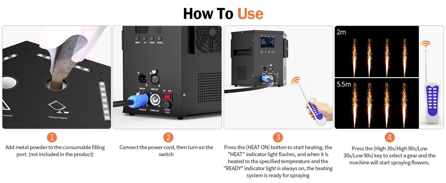 Stunning Professional Effects: Create a captivating atmosphere with vibrant, high-density sparks. The dual-motor drive ensures a powerful and consistent performance for a truly professional spectacle that wows any crowd.
