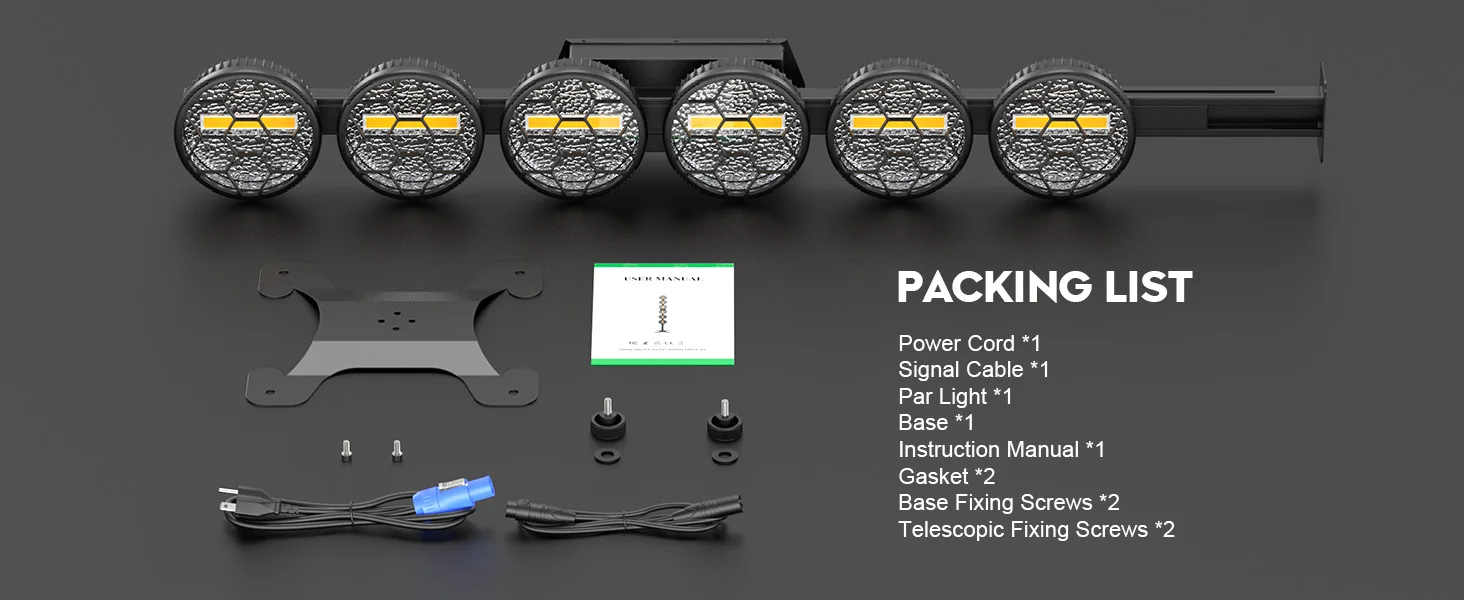 Flexible Height Adjustment: Engineered for ultimate versatility, the unit features an adjustable vertical stand, allowing for precise height setting between 120cm and 140cm. This enables seamless integration into diverse stage layouts and ensures optimal light placement.